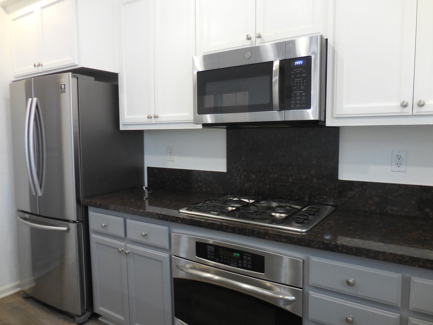 Upstairs, the primary suite features a private bathroom and walk-in closet. Two additional bedrooms share a full hallway bathroom, and the laundry room with washer and dryer is conveniently located upstairs as well. The home has new luxury vinyl plank flooring throughout.